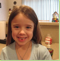 The second tooth is out! She actually lost it while we were in SA. (I am just a little behind on my blogging!) Isn't that a cute smile? And she already has another loose one!